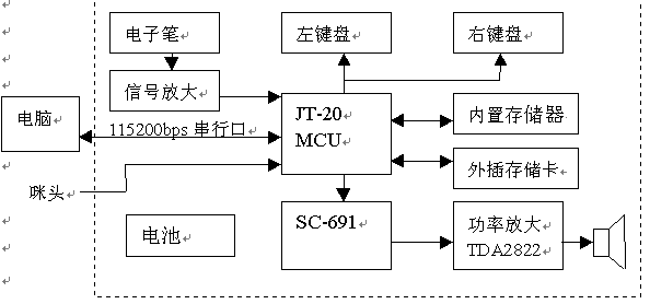 本方案采用JT-20 MCU加上Sensory SC691語(yǔ)音合成芯片。