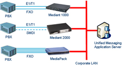 通過利用語音識別和一些新一代技術(shù),使用臺式機、移動設(shè)備或普通電話就可以對系統(tǒng)進行統(tǒng)一訪問。 對于此類系統(tǒng),可以在 PBX 和 UM 服務(wù)器之間插入 AudioCodes 網(wǎng)關(guān),從 TDM 變換到統(tǒng)一消息傳遞系統(tǒng)選擇使用的 VoIP 協(xié)議:SIP。