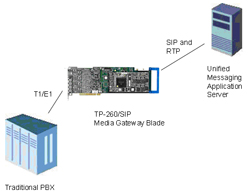 大量的下一代 UM 平臺都被設(shè)計為使用 SIP 作為應(yīng)用和外部世界之間唯一的接口。 將關(guān)注的重點集中于 SIP 可以為開發(fā)人員帶來許多好處,但會為 VAR/集成商帶來將 UM 應(yīng)用與現(xiàn)有 PBX 設(shè)備進行接口方面的挑戰(zhàn)。 解決的方法是使用媒體網(wǎng)關(guān)來提供PBX 上 TDM 接口和 UM 應(yīng)用的 SIP 接口之間的轉(zhuǎn)換。