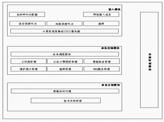 另外從CTI技術(shù)和呼叫中心的角度來看,也應(yīng)當(dāng)實(shí)現(xiàn)適當(dāng)線路數(shù)的自動(dòng)語音應(yīng)答(IVR)功能,呼叫/業(yè)務(wù)處理數(shù)據(jù)的統(tǒng)計(jì)功能,電話錄音留言功能,對主叫用戶和被叫信息號(hào)碼的有效性進(jìn)行檢查的功能,系統(tǒng)管理維護(hù)功能等才能構(gòu)成一個(gè)完整的呼叫中心系統(tǒng)。