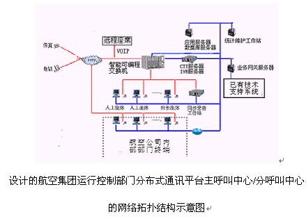 2為了充分保障整個(gè)航空集團(tuán)運(yùn)行控制部門分布式通訊平臺(tái)的穩(wěn)定性和高可靠性以及良好的性能價(jià)格比,建議采用以下的分布式呼叫中心(客戶服務(wù)中心)的建設(shè)方案,可以減少企業(yè)投資,同時(shí)具有良好的系統(tǒng)性能。