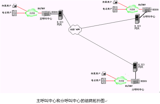主呼叫中心和多個(gè)分呼叫中心均采用采用一體化的可編程智能語音交換機(jī)的呼叫中心。
