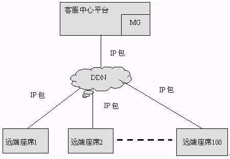 通過VOIP方式聯(lián)網(wǎng)時,語音和傳真都是通過VOIP技術(shù)處理以IP包的形式在遠端座席和中心之間進行傳輸。在主呼叫中心和遠端模塊,都需要設(shè)立媒體網(wǎng)關(guān),語音和傳真的聯(lián)網(wǎng)都是通過媒體網(wǎng)關(guān)處理后通過DDN相連的。