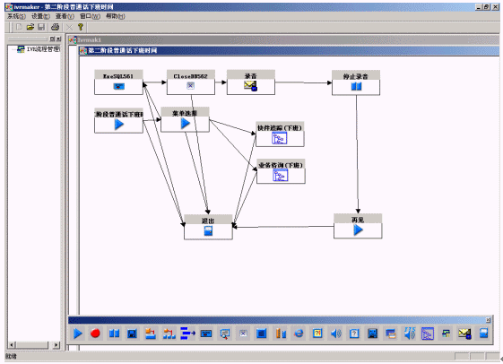 系統(tǒng)提供圖形化的語(yǔ)音流程生成環(huán)境,以方便用戶對(duì)語(yǔ)音流層進(jìn)行定制。流程生成器是一套可視化的流程設(shè)計(jì)工具,通過(guò)拖拉圖標(biāo)控件、鼠標(biāo)連線即實(shí)現(xiàn)呼叫中心CTI流程的制作,同時(shí),通過(guò)運(yùn)行時(shí)鏈接動(dòng)態(tài)連接庫(kù)(DLL),實(shí)現(xiàn)對(duì)業(yè)務(wù)數(shù)據(jù)庫(kù)的訪問(wèn);通過(guò)運(yùn)行時(shí)鏈接用戶DLL,最靈活地與用戶應(yīng)用系統(tǒng)結(jié)合;支持多種業(yè)務(wù)集成和動(dòng)態(tài)流程控制,方便用戶拓展業(yè)務(wù);采用事件驅(qū)動(dòng)機(jī)制、開放的結(jié)構(gòu),滿足各種語(yǔ)音系統(tǒng)的需要;支持不限個(gè)數(shù)、級(jí)數(shù)的IVR結(jié)構(gòu),可滿足用戶非常復(fù)雜的需求。