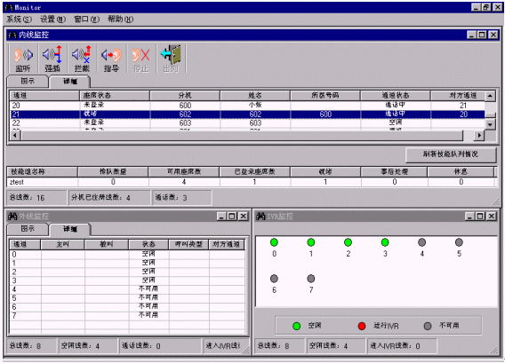 ·監(jiān)聽:班長(zhǎng)可監(jiān)聽座席與客戶之間的通話,而座席與客戶雙方都不會(huì)察覺(jué)。