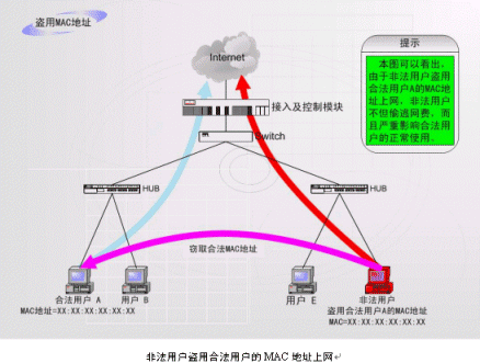 4、非法用戶盜用合法用戶的MAC地址上網(wǎng)
