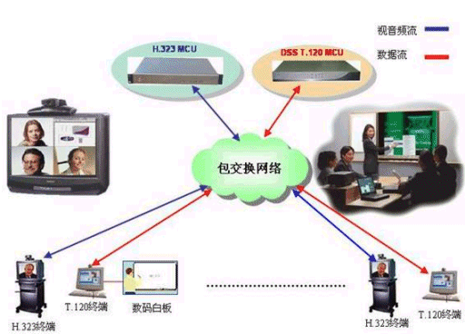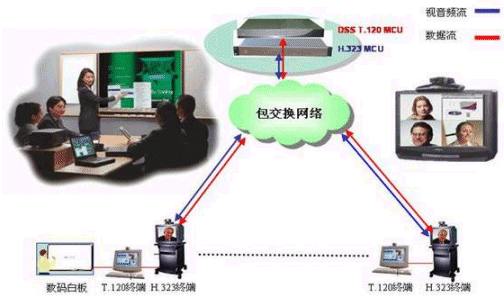DSS系統(tǒng)可以和任何符合H.320/H.323標準的MCU配合,實現會議電視系統(tǒng)中的數據功能。