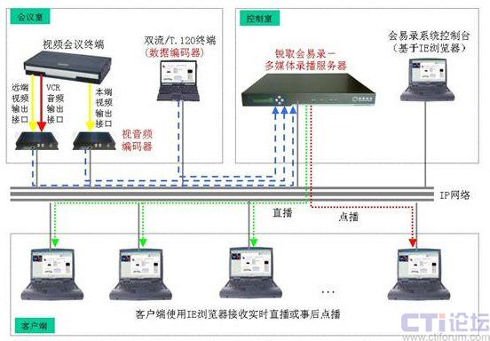 同時系統(tǒng)具備直播、點播功能,用戶使用IE瀏覽器即可接收會議的實時直播或進(jìn)行事后點播,通過直播或點播可同步觀看到會議中視音頻和數(shù)據(jù)內(nèi)容,觀看會議的效果如同身處會場之后。會易錄極大地擴(kuò)展了視頻系統(tǒng)的功能和應(yīng)用,適合任何已有或擬建視頻會議系統(tǒng)的用戶使用。