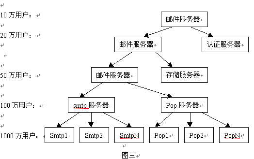 這種結(jié)構(gòu)所支持的用戶量有比較大的靈活性。用這種結(jié)構(gòu)的系統(tǒng)可以支持到幾百萬以上的用戶。最為著名的Hotmail站點所采用的就是多臺機器分布式并行操作的方式,目前其用戶數(shù)已經(jīng)達(dá)到近3000萬。通過多機集群技術(shù),使運營商能夠在處理海量郵件的發(fā)送、管理和存儲。根據(jù)負(fù)載流量管理,運營商可以掌握系統(tǒng)的負(fù)荷狀況,并根據(jù)業(yè)務(wù)發(fā)展需求來添加服務(wù)器。這種系統(tǒng)可以支持上百萬乃至上千萬的用戶。