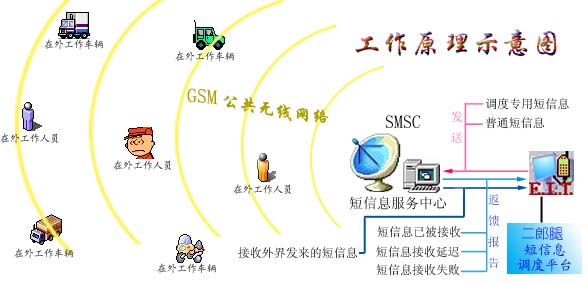 二郎腿短信息調(diào)度平臺是利用目前社會上大眾普遍擁有手機的現(xiàn)成資源,通過移動通訊公司提供的短信息服務(wù)功能作為通信信道,直接對手機進(jìn)行低層操作控制,以“收發(fā)短信息”的方式來實現(xiàn)信息的傳遞。(通信資費標(biāo)準(zhǔn) 與在手機上收發(fā)短信相同。)調(diào)度平臺還對每條發(fā)出的信息 的接收狀態(tài)進(jìn)行跟蹤,確保信息能被安全 、準(zhǔn)確的接收。“調(diào)度專用短信息”遵循專為各種調(diào)度工作而設(shè)計的《調(diào)度協(xié)議》,遵循該協(xié)議能最大限度避免由于“短信息服務(wù)中心”的失誤,而導(dǎo)致短信 息丟失的情況。調(diào)度專用短信息對“接收設(shè)備”無特殊要求,任何支持“接收中文短信息”的手機都能實現(xiàn)。