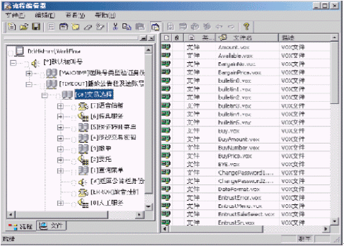 ·采用Windows Explorer風(fēng)格的樹形節(jié)點編輯呼叫流程,同時可通過查看屬性查看每個業(yè)務(wù)節(jié)點上下級之間的關(guān)系。使用戶對IVR的整個呼叫流程,以及各個節(jié)點之間的關(guān)系一目了然。