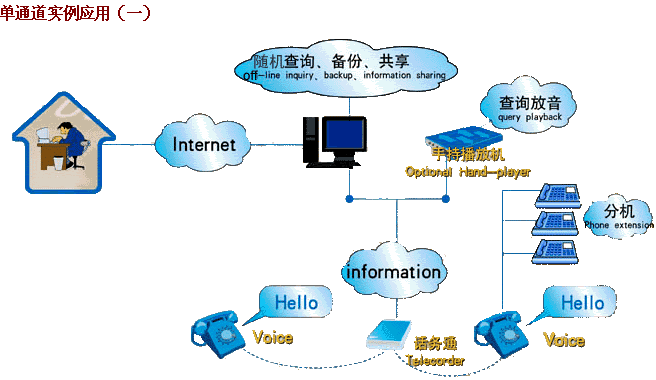 錄音記錄應(yīng)當能夠方便地通過多種途徑回放,實現(xiàn)對錄音記錄資料的利用,這也是用戶配置電話錄音系統(tǒng)的最主要目的;胤趴梢酝ㄟ^我們公司開發(fā)生產(chǎn)的選件手持播放器回放,通過網(wǎng)絡(luò)回放,通過聲卡在其它計算機上回放等多種方式來實現(xiàn)。