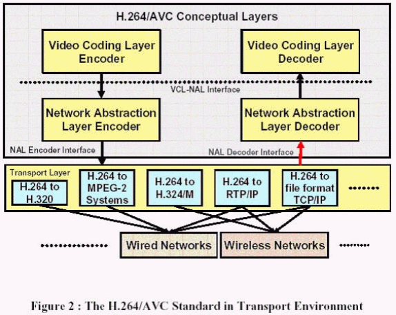 根據(jù)圖2,H.264/ AVC在不同的概念層上區(qū)分開來,視頻編碼層(VCL)和網(wǎng)絡(luò)抽象層(NAL)。VCL和NAL都是H.264/ AVC標(biāo)準(zhǔn)的一部份。VCL對視頻編碼信號(hào)進(jìn)行了有效的說明。H.264/AVC的NAL定義了視頻編碼和外面世界之間的接口。它通過NAL單元來支持大部分基于包的網(wǎng)絡(luò)。在NAL解碼接口,它假設(shè)NAL單元已經(jīng)通過解碼命令被發(fā)送,數(shù)據(jù)包要么被正確接受,要么丟失,如果有效載荷里包括了錯(cuò)誤的數(shù)據(jù)流,NAL單元的頭就會(huì)產(chǎn)生一個(gè)錯(cuò)誤的標(biāo)記。由于標(biāo)記可以用于不同的目的,因此它并不作為標(biāo)準(zhǔn)的一部分。然而,它提供一個(gè)在整個(gè)網(wǎng)絡(luò)里提供錯(cuò)誤指示信號(hào)的方法。此外,接口規(guī)范要求標(biāo)準(zhǔn)化主體有責(zé)任對不同傳送協(xié)議進(jìn)行描述。NAL單元在不同傳輸系統(tǒng)的精確傳輸和加密,例如H.320,MPEG-2系統(tǒng)和RTP/IP,也同樣在h.264/AVC標(biāo)準(zhǔn)化的范疇以外。在標(biāo)準(zhǔn)里面正式定義了NAL解碼接口,然而,VCL和NAL之間的接口只是概念上的定義,主要是幫助描述和分開VCL和NAL的任務(wù)。