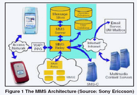 本概述提供了有關(guān)MMS標準的簡要介紹,主要針對視頻內(nèi)容交換方面的內(nèi)容;镜腗MS網(wǎng)絡(luò)架構(gòu)如圖 1。