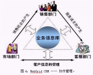 企業(yè)的銷售、服務(wù)和市場業(yè)務(wù)有一個共同的特點(diǎn),就是都與客戶打交道,都是以"客戶為中心"開展業(yè)務(wù)的。面對共同的客戶,需要共享相同的客戶信息。與此同時,各部門的業(yè)務(wù)也不是孤立的,而是在互動的過程中相互促進(jìn),共同提升。WebGrid CRM系統(tǒng)根據(jù)CRM理念而設(shè)計,將銷售、市場和服務(wù)業(yè)務(wù)進(jìn)行整合,提供了統(tǒng)一的操作平臺,實(shí)現(xiàn)了業(yè)務(wù)信息的共享。此外,WebGrid CRM制定了靈活的工作流程,實(shí)現(xiàn)了各個業(yè)務(wù)部門之間的信息交互:由市場活動可以生成銷售機(jī)會;服務(wù)過程中的銷售意向也可以通過反饋提交到銷售部門中去……WebGrid CRM的這一功能消除了市場、銷售和服務(wù)各部門之間的信息孤島,將三個部門緊密結(jié)合,形成一個有機(jī)的整體,從而提升了企業(yè)整體的運(yùn)營效率。