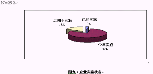 對大多數(shù)企業(yè)來說,對CRM還處于關(guān)注階段,只有7家企業(yè)表示已經(jīng)開始實(shí)施,在電話訪問中,了解到這7家企業(yè)的實(shí)施的主要是在渠道管理和客戶呼叫中心等方面,但表示今年會開始實(shí)施的卻超過8成。