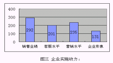 3) 提升企業(yè)形象:很多受訪企業(yè)特別是服務(wù)業(yè),已經(jīng)建立客戶忠誠度放在了很重要的位置,但比較其它幾個直接動因,比例偏低,這也說明"以客戶為中心"的觀念還沒有"以利潤為中心"強(qiáng)烈。