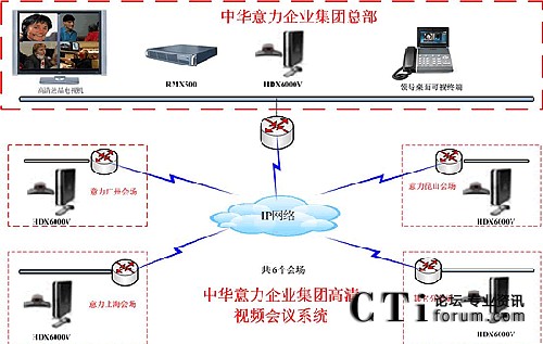具體配置如下: 在中華意力企業(yè)集團(tuán)配置RMX508C,所有會場配置HDX6000V及一臺領(lǐng)導(dǎo)桌面終端VVX1500