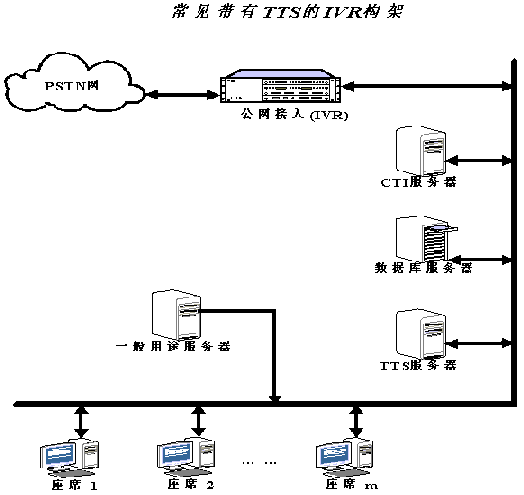 目前常見的IVR系統(tǒng)大都是通用的工控機(jī)平臺上插入語音板卡組成,并支持中文語音合成TTS等技術(shù)。