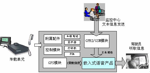首先,當車載GPS單元接收到由監(jiān)控中心發(fā)來的調(diào)度、提醒、叫車等信息時,語音合成會伴隨顯示器上的顯示,同步將文字讀出,轉(zhuǎn)變?yōu)榍逦鲿车脑捯,這樣一方面司機不用特意在駕駛中注意顯示屏的文字內(nèi)容而同樣可以及時獲取信息的內(nèi)容,另一方面也減少了因為分神駕駛而引發(fā)的交通安全隱患。