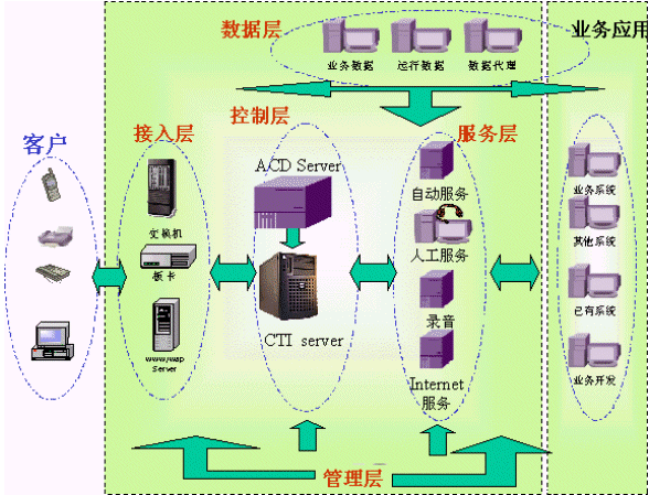 ___在專用交換機(jī)+ACD的基礎(chǔ)上擴(kuò)展路由和統(tǒng)計功能,開放的CTI-Link接口,采用CTI技術(shù)將通信與計算機(jī)結(jié)合。____