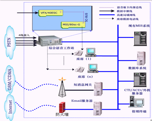 - 接入線路:單臺服務器提供2~120路電話呼入