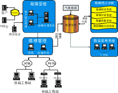 <> 系統(tǒng)由110聯(lián)動(dòng)事務(wù)處理中心和分布廣泛的基層職能部門工作站組成,通過(guò)PSTN或ATM網(wǎng)絡(luò)互聯(lián)