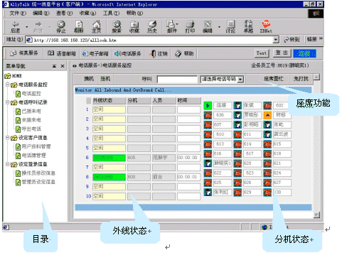 坐席輸入正確的工號(hào)、密碼后,登錄AllyTalk統(tǒng)一消息平臺(tái),電話服務(wù)具有如下功能: