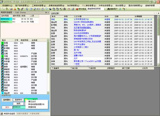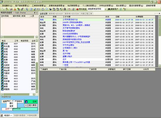 在個(gè)人事務(wù)管理中,坐席人員方便的設(shè)定工作計(jì)劃安排,查詢(xún)呼叫記錄(呼入、呼出、呼入失。,收發(fā)個(gè)人Email、短信息、個(gè)人公文以及進(jìn)行公文流轉(zhuǎn)等。