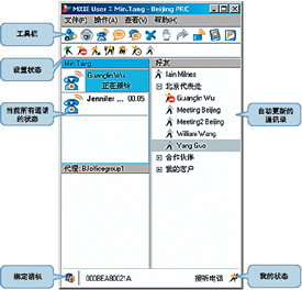MXIE可以設(shè)置你的工作狀態(tài),比如忙碌、外出,一方面可以避免別人的打擾,更可以提高呼叫的效率。蘇迪思的工程師給我們講述了一個(gè)應(yīng)用,比如當(dāng)有人打入某公司的技術(shù)支援電話,接線員在得知對(duì)方的需求后,可以通過(guò)察看工程師在線的狀態(tài)將電話轉(zhuǎn)到合適的人,這一工作狀態(tài)的顯示避免了內(nèi)部不必要的轉(zhuǎn)接,提高了呼叫的效率。另外通過(guò)這一狀態(tài)的顯示和呼叫路由的自己設(shè)定,他人會(huì)用最直接的方式找到你,但是又不必去記錄你的移動(dòng)電話、固定電話號(hào)碼,倘若你在開會(huì)中,他們還可以用即時(shí)通信的方式和你取得聯(lián)系。這種靈活的同時(shí)人性化的功能設(shè)計(jì)非常適合忙碌的商業(yè)人士和媒體從業(yè)者。