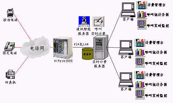 北京商路通信息技術(shù)有限公司基于CTI技術(shù),在SIEMENS HiPath 3000上開發(fā)成功實(shí)時(shí)計(jì)費(fèi)系統(tǒng)。商路通實(shí)時(shí)計(jì)費(fèi)系統(tǒng)最大限度的滿足了用戶在通信管理實(shí)時(shí)性上的需求,是目前功能最強(qiáng)大、技術(shù)最領(lǐng)先的計(jì)費(fèi)系統(tǒng)。