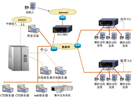 在河北地稅12366原有設(shè)備的基礎(chǔ)上,增加了一臺(tái)ICC PBX,開放了若干端口,并在坐席計(jì)算機(jī)上部署了ICC終端軟件,將12366傳統(tǒng)的第四代呼叫中心,升級(jí)為第五代呼叫中心。