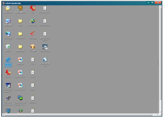 同時(shí)彈出一個(gè)ICC的共享框,共享框里出現(xiàn)的就是納稅人的桌面(納稅人桌面的背景將被系統(tǒng)自動(dòng)設(shè)置成一種單一的色彩,如下圖納稅人桌面背景被設(shè)置成灰色,所以坐席看到納稅人的桌面都是單一的顏色),坐席把鼠標(biāo)放在共享框里,就可以像操作自己的電腦一樣來操作納稅人的電腦了。如下圖: