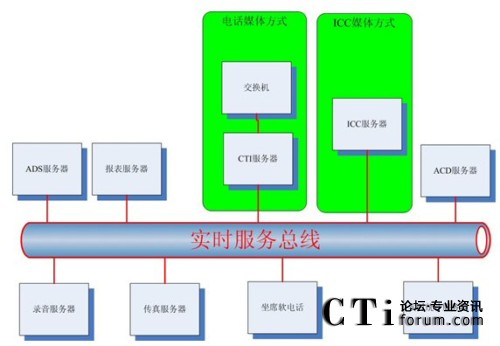 從上圖可以看出,通過實時服務總線,電話媒體方式和ICC媒體方式與其他服務的調(diào)用關系保持一致即可: