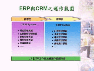 由上述可知,ERP系統(tǒng)主要應(yīng)用于業(yè)務(wù)人員接到訂單后,便開始進入ERP系統(tǒng)的運作范圍內(nèi),一直到產(chǎn)品出貨收到貨款為止,故接單前的業(yè)務(wù)開發(fā)、客情維系甚或報價管理等工作,其實并非其主要應(yīng)用范圍。