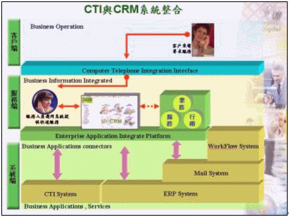 但傳統(tǒng)的CTI系統(tǒng)其重點乃是著重在服務(wù)工作的自動化方面,只提供簡單的客戶來電訊息提示,對于客戶進一步的背景資料、嗜好、購買需求及歷史往來記錄并不清楚也無法實時得知,更別說想藉由CTI系統(tǒng)來提供客戶個人化的服務(wù)、有效節(jié)省通話時間、刺激其潛在的購買需求,為了達(dá)成上述的目標(biāo),唯有將CTI系統(tǒng)與CRM系統(tǒng)進行整合,如此,客戶服務(wù)的質(zhì)量才可能達(dá)成某個程度的提升,而良好的客戶關(guān)系管理也將是未來呼叫中心運作成功與否的關(guān)鍵所在。