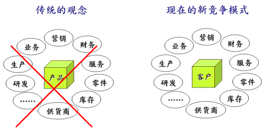 在CRM系統(tǒng)架構(gòu)中,如何持續(xù)和客戶保持好關(guān)系、進(jìn)而提高客滿意度是最主要目標(biāo)之一,也是客戶關(guān)系管理架構(gòu)的核心價(jià)值所在。現(xiàn)在企業(yè)的競(jìng)爭(zhēng)模式已經(jīng)從以往以產(chǎn)品為中心的思考模式,轉(zhuǎn)變到以客戶為中心的思考模式。(如圖一)