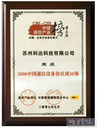 2009中國通信產(chǎn)業(yè)榜 科達(dá)入圍“2008中國通信設(shè)備供應(yīng)商50強(qiáng)”