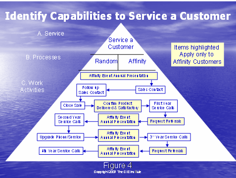 圖4中的全部圖片推翻了所需的服務(wù)客戶的行動(dòng)。這兩種方法提供了不同的過程以達(dá)到這個(gè)結(jié)果。在這個(gè)部分的底部,C. 工作行動(dòng),這些方格體現(xiàn)了頂端開始的行動(dòng),和經(jīng)歷之前描述的獲得和保持客戶的過程。
