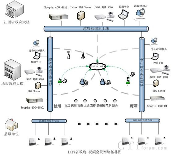 G50等相關(guān)設(shè)備。本套會議電視系統(tǒng)成功地實現(xiàn)了省、設(shè)區(qū)市、縣(區(qū))三級聯(lián)網(wǎng),此項目的部署,同時得到了RADVISION合作伙伴江西省電信公司的大力支持與協(xié)調(diào)。在項目簽約后3個月內(nèi)就完成了貨物調(diào)備、安裝、調(diào)試及測試、培訓(xùn)等一系列相關(guān)工作,受到了江西省政務(wù)信息網(wǎng)領(lǐng)導(dǎo)們的一致好評。