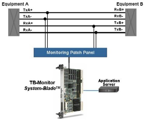 每個TB監(jiān)測系統(tǒng)刀片都配有64E1/T1的接收接口,可單向監(jiān)測多達(dá)64個E1/T1鏈路,或雙向監(jiān)測多達(dá)32個E1/T1鏈路。使用TelcoBridges的監(jiān)測接線面板,每條鏈路通過基于標(biāo)準(zhǔn)的高阻抗連接進(jìn)行探測,實現(xiàn)非插入式網(wǎng)絡(luò)監(jiān)測。