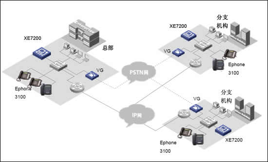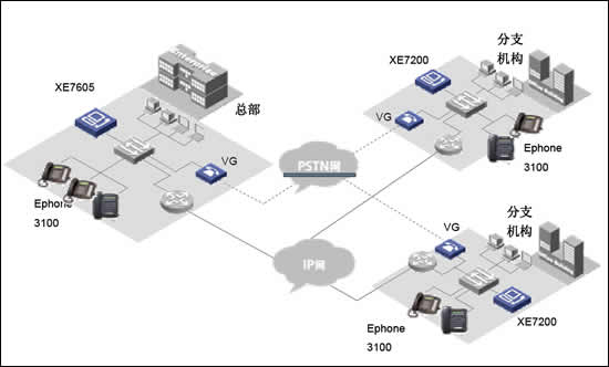華為三康的XE7000IP語音解決方案是為企業(yè)提供融合的通信解決方案,在同一網(wǎng)絡(luò)上融合語音、數(shù)據(jù)和視頻信息,以滿足其日益增長的企業(yè)通信的要求從而解決了現(xiàn)代企業(yè)面對的傳統(tǒng)PBX語音服務(wù)和IP網(wǎng)絡(luò)數(shù)據(jù)服務(wù)分離問題。華為三康的XE7000IP語音解決方案構(gòu)建在企業(yè)現(xiàn)有IP數(shù)據(jù)網(wǎng)絡(luò)之上,以集中式管理方式提供企業(yè)全網(wǎng)范圍內(nèi)的呼叫控制以及管理,業(yè)務(wù)控制和信令分離使得用戶在管理上更加簡單透明,極大的節(jié)省了日常維護(hù)費(fèi)用和降低了維護(hù)難度。并使得客戶可以在任意地方實(shí)現(xiàn)IP語音數(shù)據(jù)接入,使得企業(yè)分布式辦公的不再因?yàn)槲锢砜臻g隔離而無法實(shí)現(xiàn)。