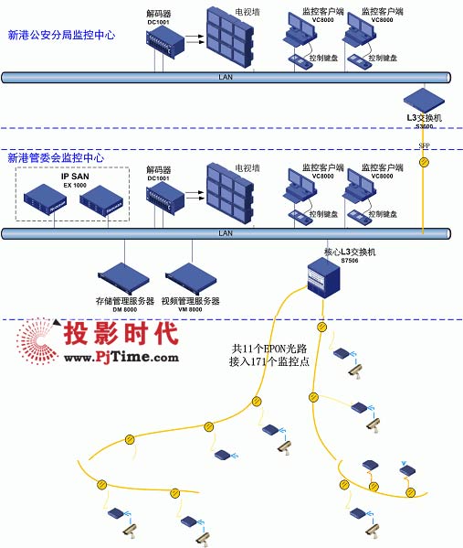 在經(jīng)過反復(fù)選擇和比較之后,南京新港開發(fā)區(qū)選擇了在平安工程建設(shè)過程中頗有建樹的H3C的IP智能監(jiān)控,來完成監(jiān)控系統(tǒng)的建設(shè)。H3C也根據(jù)南京新港的具體需求,提供了一整套涵蓋最新的EPON傳輸、SIP控制、IP