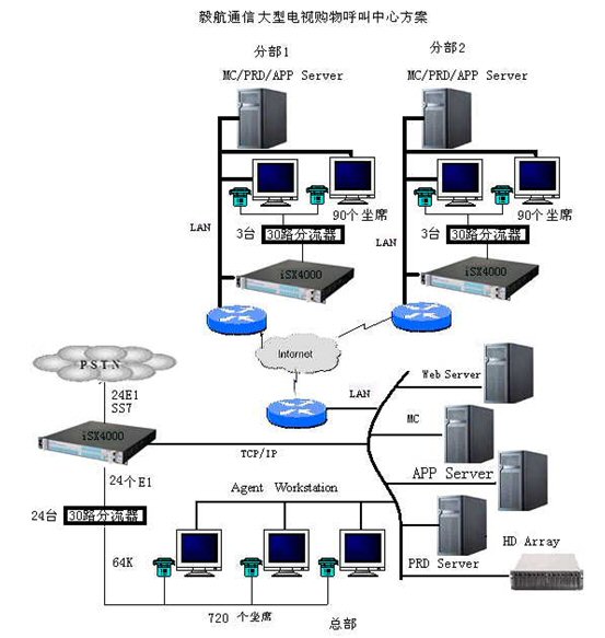 基于iSX4000構建的大型電視購物呼叫中心拓撲圖