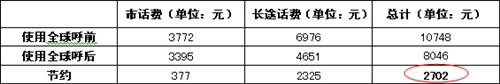 采用紐曼全球呼企業(yè)省錢(qián)方案后,公司給每個(gè)駐地都配置了3臺(tái)全球呼,北京總部安裝了5臺(tái),這套花費(fèi)僅3000元共20臺(tái)全球呼電話(huà)的方案當(dāng)月就節(jié)約話(huà)費(fèi)2700多元。隨著員工的使用日漸習(xí)慣和其它部門(mén)的陸續(xù)使用,公司預(yù)計(jì)下月話(huà)費(fèi)將控制在4000元以?xún)?nèi)。