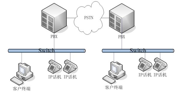 - 普通網(wǎng)絡(luò)結(jié)構(gòu):適用用于中型企業(yè)。在不同地域有公司分部,各分部之間通訊需要通過PSTN,每個(gè)分部都有自己的PBX。相對于每個(gè)分部而言,采用的是簡單網(wǎng)絡(luò)結(jié)構(gòu)。