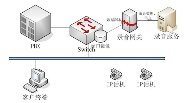 NETLOG VOIP語音記錄系統(tǒng)可以方便靈活的支持任何網(wǎng)絡(luò)結(jié)構(gòu),并可以根據(jù)用戶要求指定工作的方式。由于采用端口鏡像技術(shù),如果要直接采用Switch連接,則要求Switch必須支持端口鏡像功能;如果Switch不支持端口鏡像,則將所有要錄音的話機(jī)與錄音網(wǎng)關(guān)連接在同一個(gè)集線器上,錄音網(wǎng)關(guān)支持這種工作方式。