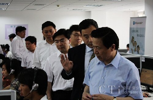 在易方董事長于堅(jiān)的介紹下,各位領(lǐng)導(dǎo)對呼叫中心服務(wù)外包行業(yè)有了比較直觀的印象與理解。梁葆華書記在參觀中還指出,客服中心行業(yè)發(fā)展?jié)摿薮。并對花橋開發(fā)建設(shè)取得的成績給予充分肯定。