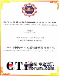 客戶聯(lián)絡(luò)中心標(biāo)準(zhǔn)委員會層層評估和共同審定,上海寶東(DataTool)及VERINT雙雙獲得“2009中國呼叫中心排班管理軟件獎”,這一大獎的頒發(fā)是ICMI對寶東及VERINT的肯定與支持,代表著權(quán)威機(jī)構(gòu)對VERINT的WFM排班管理軟件在呼叫中心行業(yè)中的貢獻(xiàn)及對寶東公司技術(shù)服務(wù)能力的認(rèn)可及肯定。