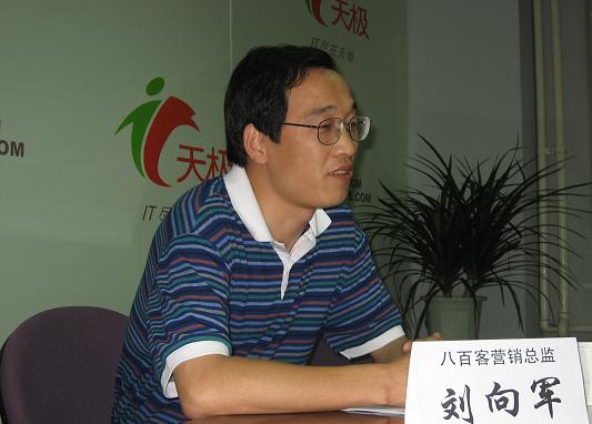 劉向軍:一個(gè)公司的名稱(chēng)一定有它的含義。當(dāng)時(shí)創(chuàng)業(yè)的時(shí)候來(lái)講,這個(gè)名字意思很多。其中很重要的就是一個(gè)理念。當(dāng)時(shí)對(duì)未來(lái)市場(chǎng)的評(píng)估看不太清楚,但是對(duì)一個(gè)提供在線(xiàn)托管服務(wù)廠商,單位廠商認(rèn)為至少要到八百個(gè)客戶(hù)。所以八百客具有八百個(gè)客戶(hù)的意思。當(dāng)然還有其他的意思。現(xiàn)在八百客經(jīng)過(guò)這么兩年的時(shí)間,無(wú)論從產(chǎn)品技術(shù),還是從客戶(hù)的現(xiàn)在擁有量,還是在市場(chǎng)影響層面,已經(jīng)站住腳跟。當(dāng)然一個(gè)行業(yè)的發(fā)展,這種趨勢(shì)越來(lái)越快。